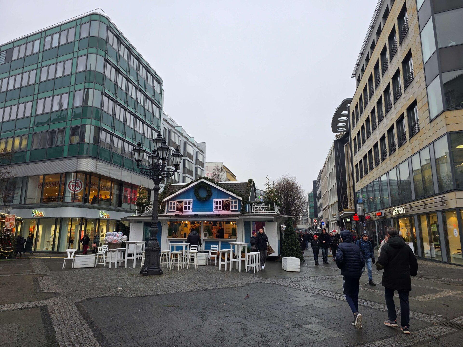 Ved julemarkedet ved Gedächtnis Kirche delte vi et langosbrød til frokost, og i Primark skyndte vi os ud igen, da vi så den enormt lange kø. Vi ønskede ikke at falde for noget i butikken, for den kø gad vi ikke. Da vi var i Primark forleden, stillede vi også vores kurv, der kun indeholdt sokker og hårelastikker, da vi så køen. Der er ingen varer i Primark, der er værd at stå i kø for i så lang tid. Apropos kø, så gik vi forbi indgangen til Stranger Things-julemarkedet, der havde sidste åbningsdag i dag. Der var mindst 2 timers kø!