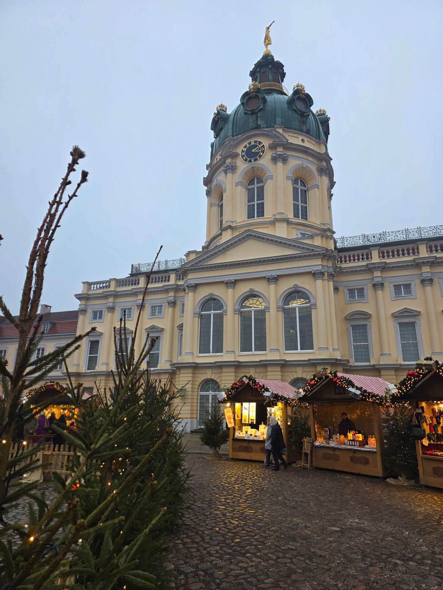 Vi fortsatte videre med U-bahnen til Wilmersdorf for at besøge et par julemarkeder, som vi ikke tidligere har været på. Julemarkedet på Wilmersdorf Str. var virkelig skuffende, men julemarkedet ved Schloss Charlottenburg var bestemt et besøg værd. Stort og flot og med forbavsende få mennesker her en lørdag eftermiddag – og så kunne Valdemar få en gang flammlachs i brød.