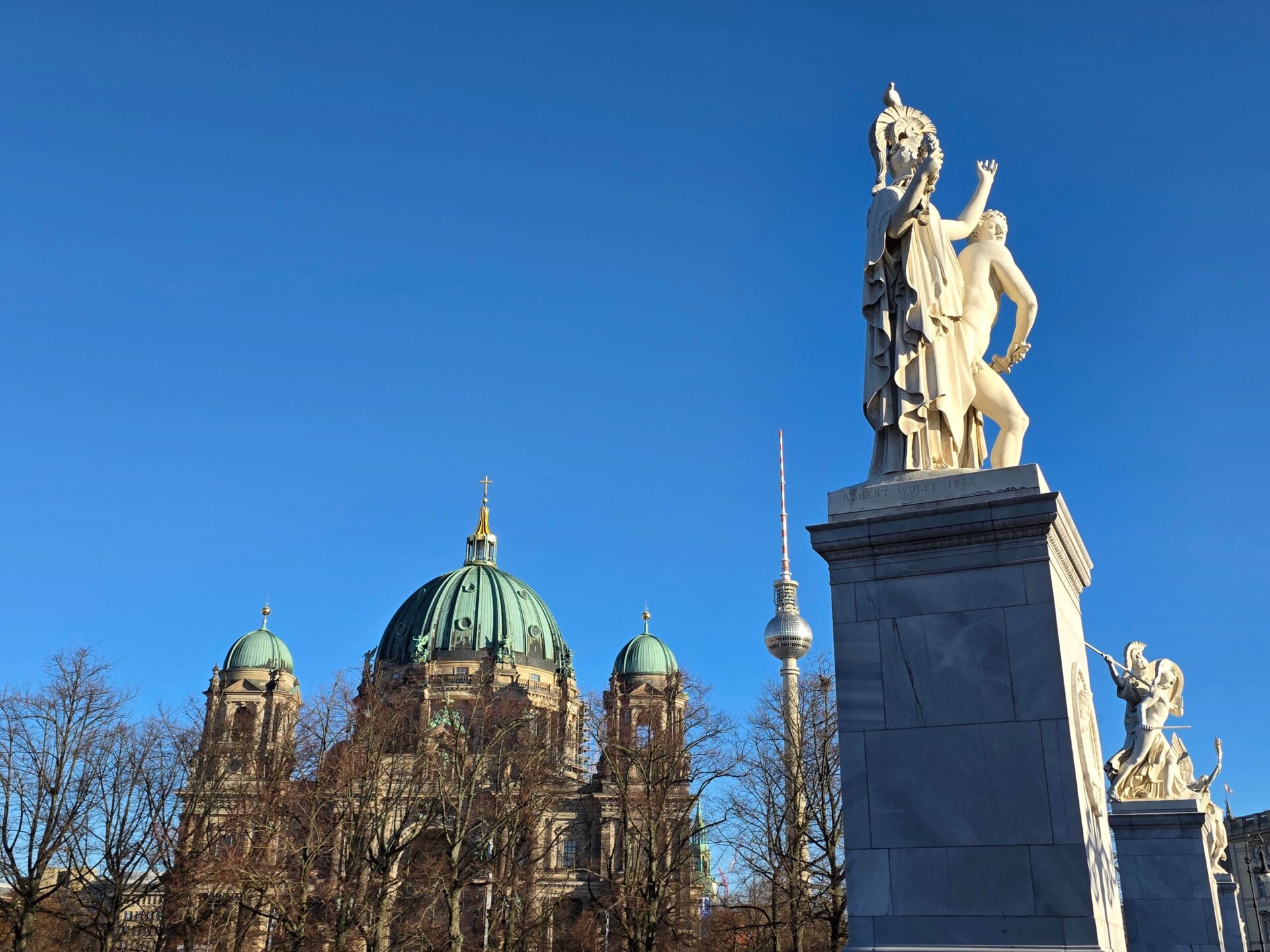 Vi gik igennem julemarkedet ved kirken, men havde ikke plads til noget i maven. I stedet for at tage U-bahnen hjem, tog vi bus nr. 100, der kommer forbi byens største seværdigheder med endestation ved Alexanderplatz.