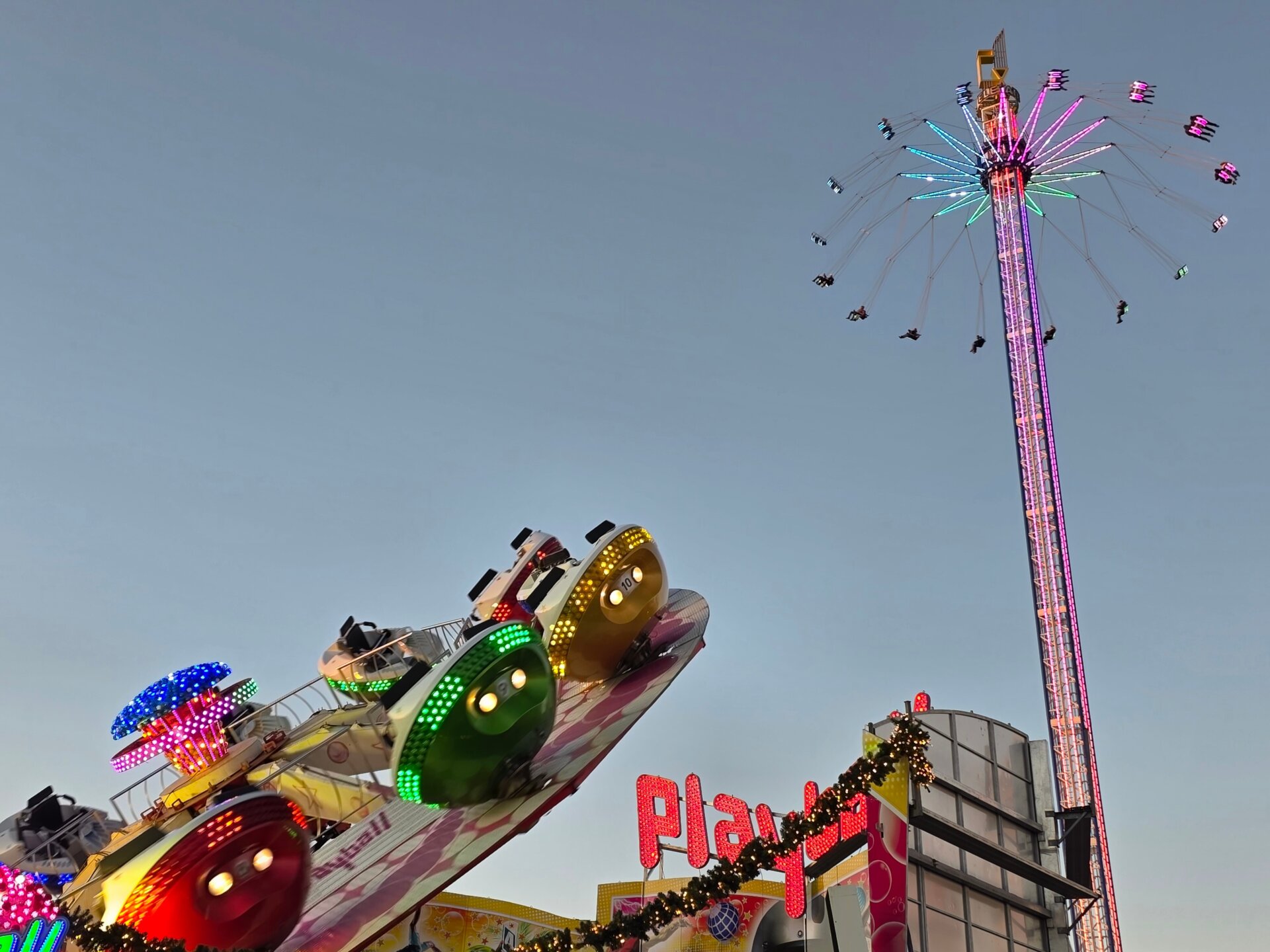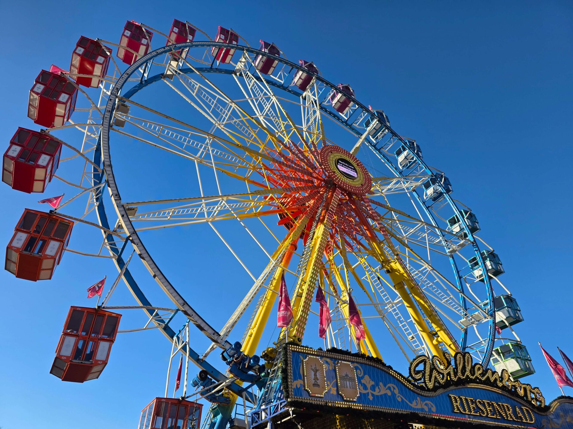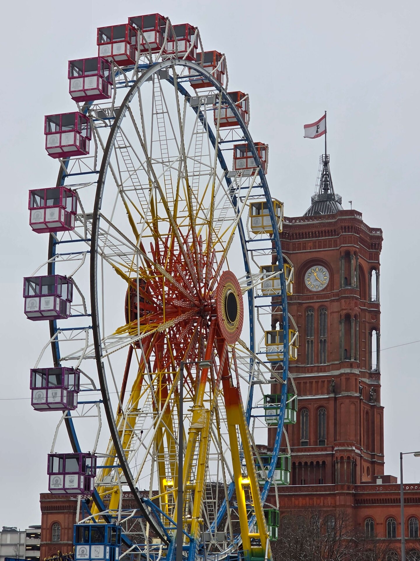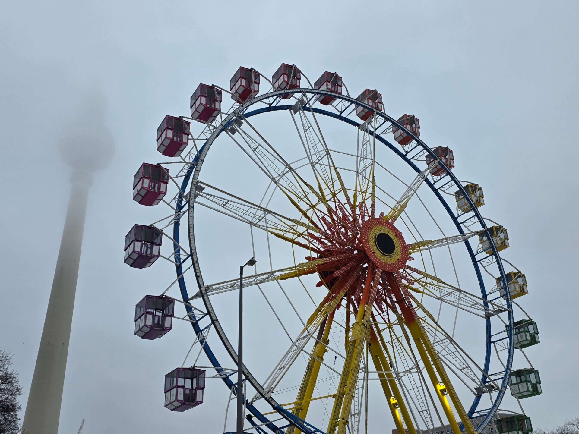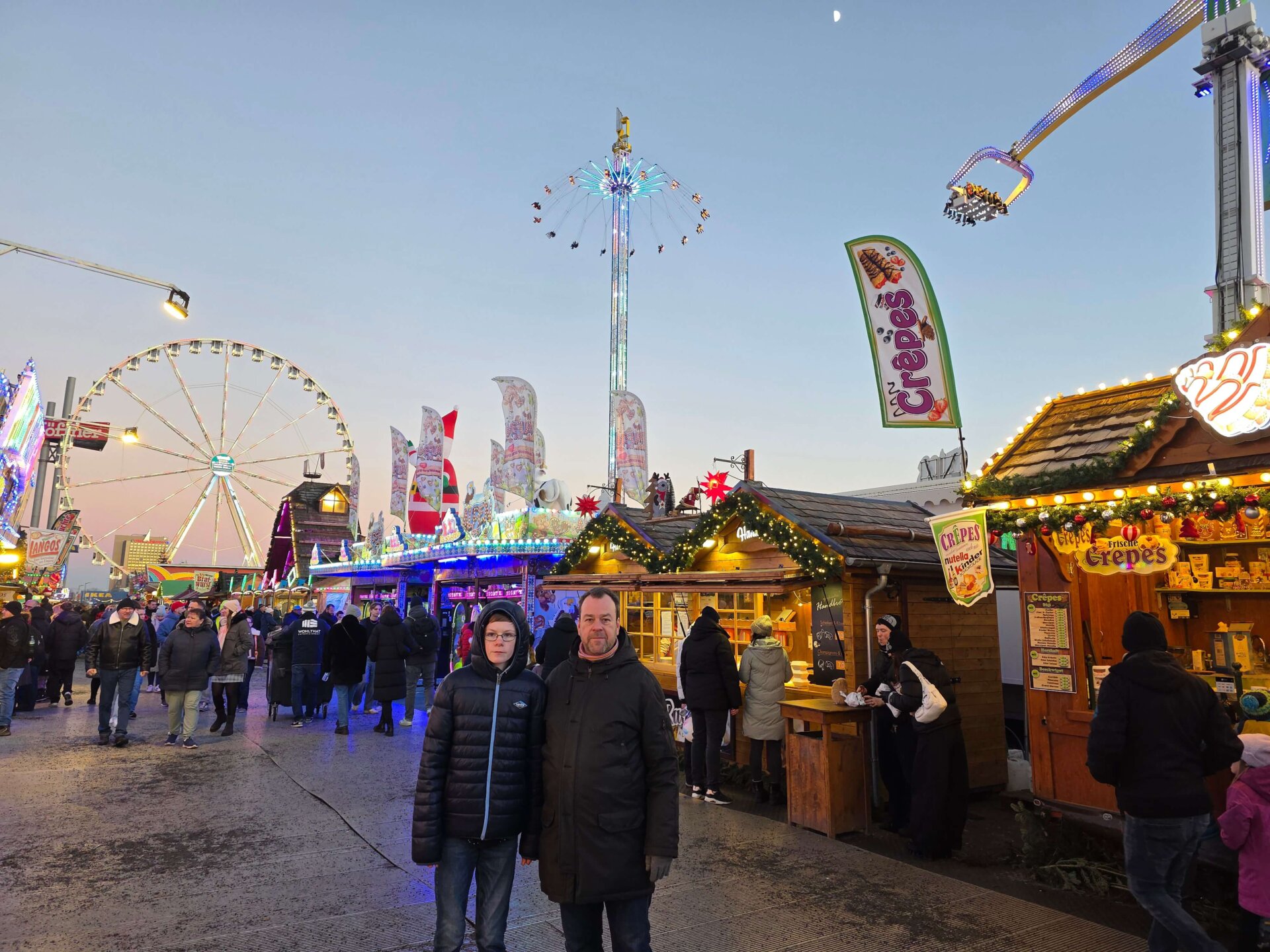 Både Valdemar og Britt trængte til en slapper, så vi rundede lige lejligheden et par timer i løbet af eftermiddagen. Midt på eftermiddagen tog vi sporvognen lidt ud af centrum til Lichtenberger Winterzeit, der mere mindede om et stort omrejsende tivoli end et julemarked. Karusseller, små rutsjebaner, pariserhjul og meget mere larm og lys! Vi prøvede ingen forlystelser, men det var alligevel sjovt at gå igennem hele markedet og se alle forlystelser og boder.