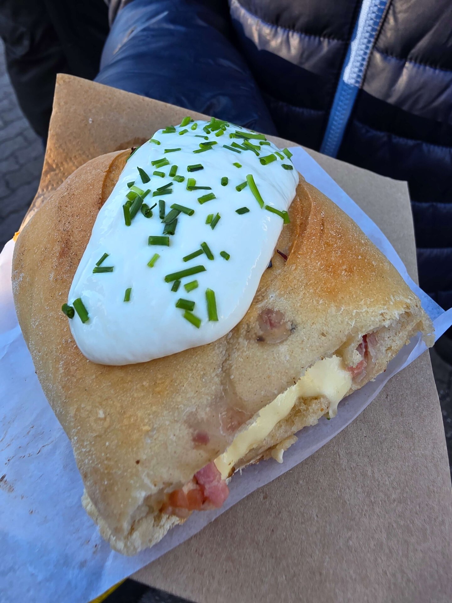 Selvom Valdemar ikke havde fået morgenmad, var der intet, der fristede på julemarkedet. Ikke en gang en pandekage med Nutella kunne vi lokke i ham. Vi valgte derfor at gå hjem igen, og Valdemars morgenmad og vores frokost blev i stedet igen brød, ost, pølse og skinke fra Edeka.