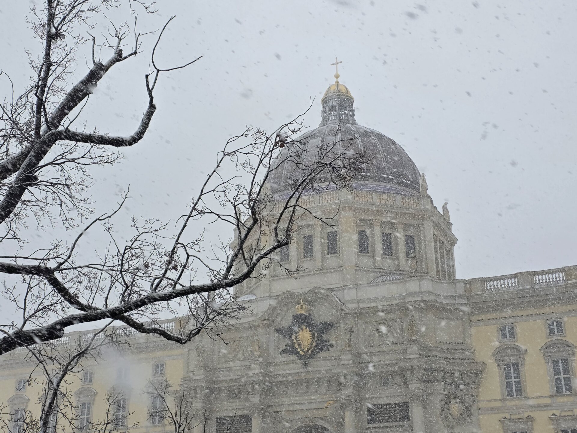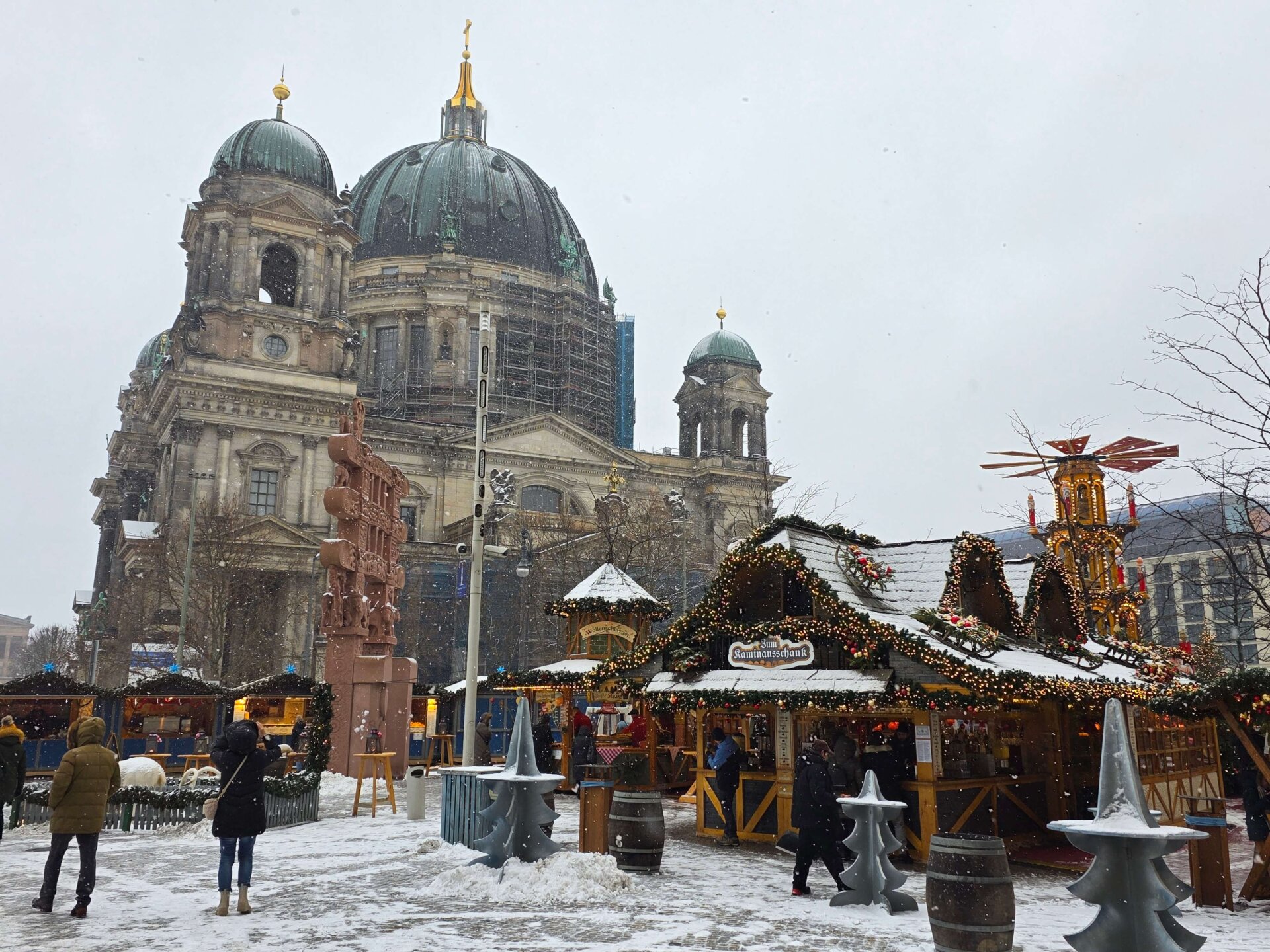 Vi lavede i går lavet en aftale med Valdemar om, at vi her til formiddag skulle gå til julemarkedet ved Gedächtnis Kirche. Vi havde dog ikke lige regnet med, at det skulle foregå i kraftigt snevejr! Valdemar fik kastet med masser af snebolde mod f.eks. vejskilte, mens vi skøjtede afsted på fortove, der selvfølgelig hverken var ryddede eller saltede.