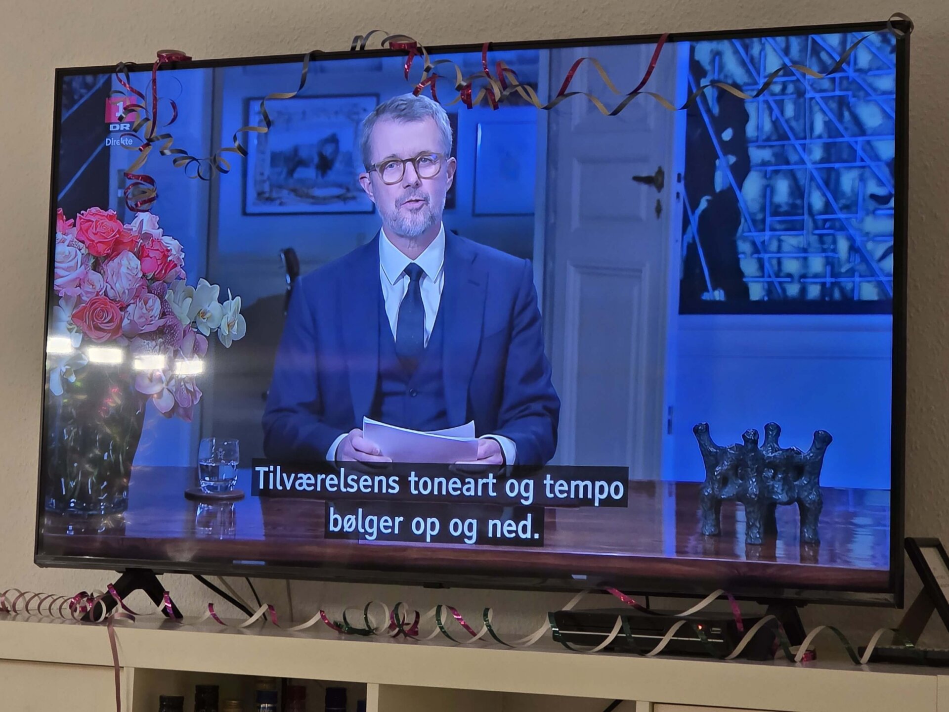 Efter ”Vær velkommen, Herrens år” og ”Der er et yndigt land”, slog vi over på SAT1, hvor vi nu ser ”Silvester-Schlagerboom 2026”. Olaf der Flipper var netop optrådt. Vi vælger igen i år at blive indenfor og nøjes med at høre det voldsomme fyrværkeri udenfor.
