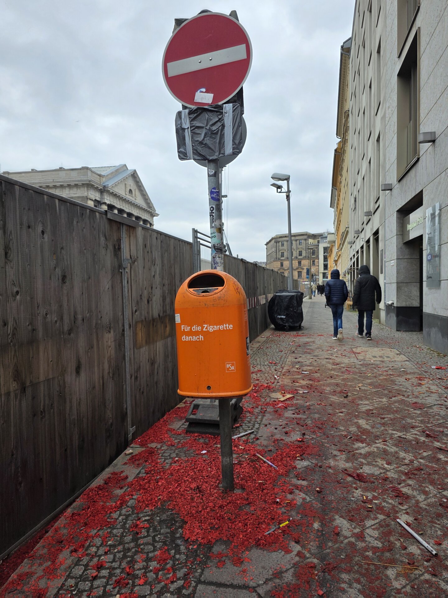 Vejret var trist, og det meste var jo selvfølgelig lukket, men vi gik alligevel en god tur. Som altid blev vi overraskede over de enorme mængder af fyrværkeri-affald, der lå overalt. Og endnu mere kom til, for flere fyrede stadig af… Vi bidrog med lidt flere knaldperler. Man bliver aldrig for gammel til knaldperler.