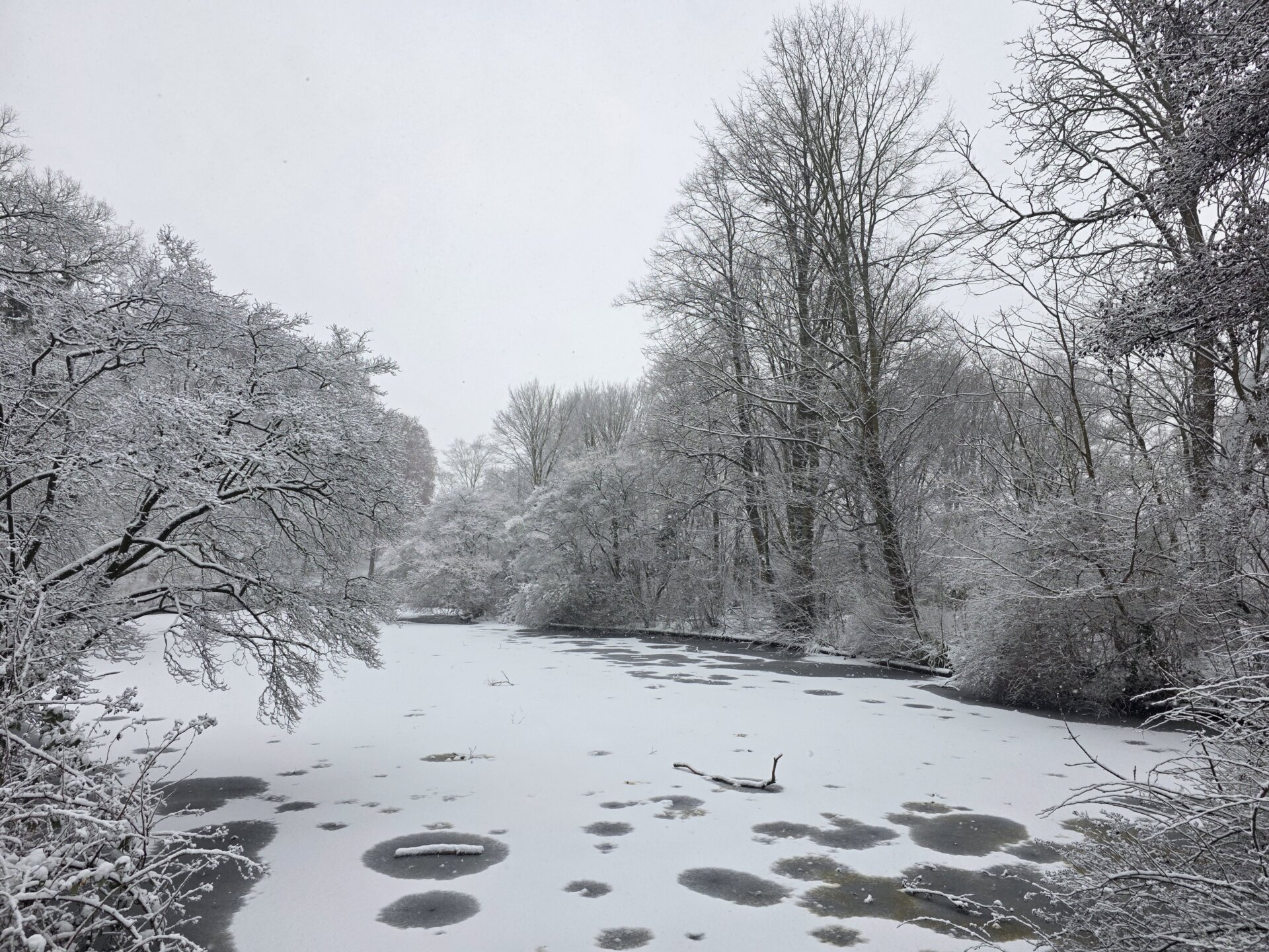 Det sneede kraftigt, da vi vågnede i morgen, og der lå et fint lag sne over det hele. Sne blev dog hurtigt til regn, men fint så det ud.