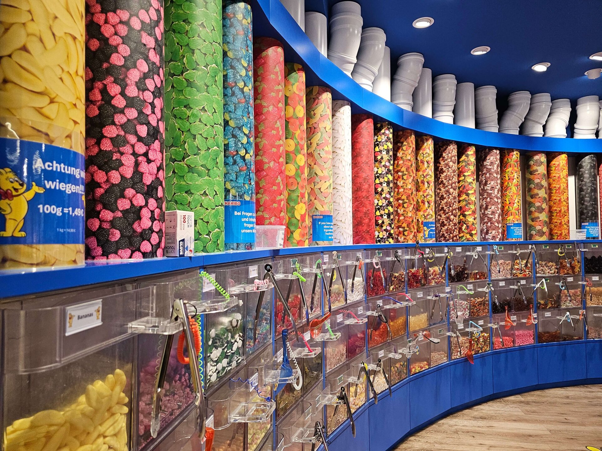 Vi har ikke bestilt morgenmad her på hotellet, så dagens første mission var at finde noget at spise. Hos den nærliggende bager var der ikke noget, der fristede, men det gjorde lidt bake off fra Lidl. Første dag i Berlin skal altid bruges på at proviantere, så vi gik den timelange tur til Haribos store butik. Konceptet for deres bland-selv-slik var ændret, så vores evne til at fylde en bøtte med slik var nu nytteløs – og slikket var dermed blevet en del dyrere. Valdemar er vokset ud af stort set alle sine bukser, så vi var glade, da det i en tøjbutik lykkedes at finde to par bukser, der var lange nok og ikke alt for store i livet.