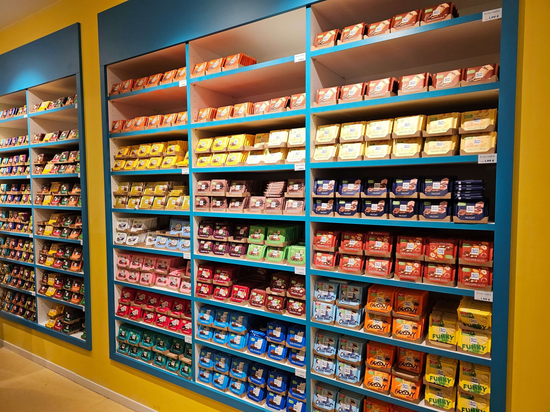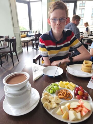 Da vi havde tid nok, gik vi også den timelange tur tilbage til Ritter Sport, hvor vi havde sat Farmor & Farfar og Onkel Jan i stævne for at kreere vores egen chokolade. Vi fortsatte til Rausch Schokoladenhaus til kaffe, kakao, kage og chokoladefondue, som dermed blev vores frokost.