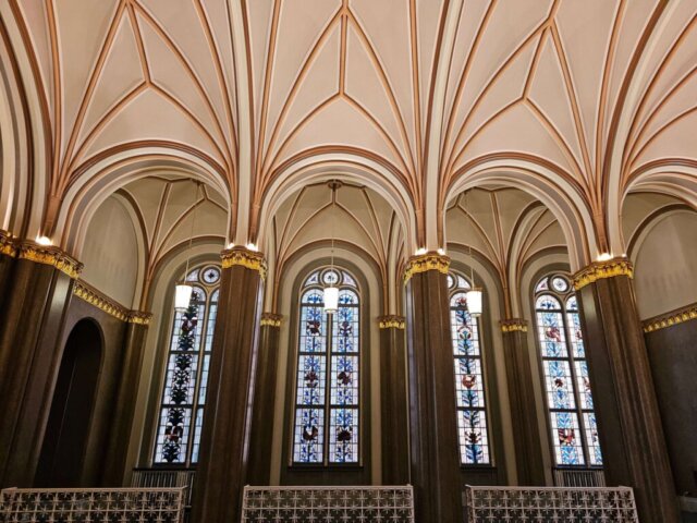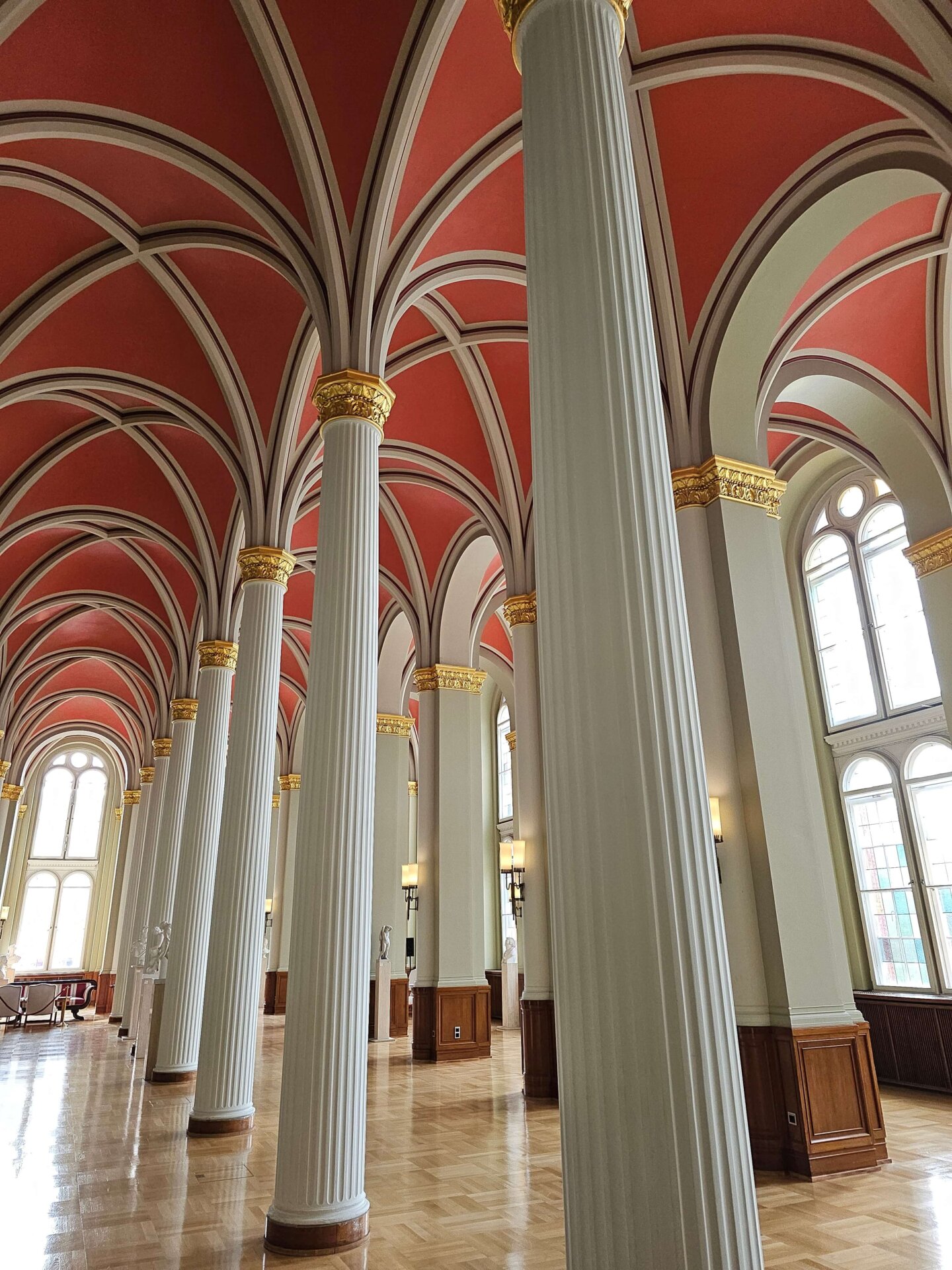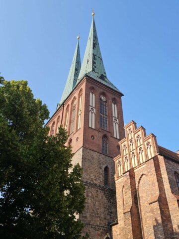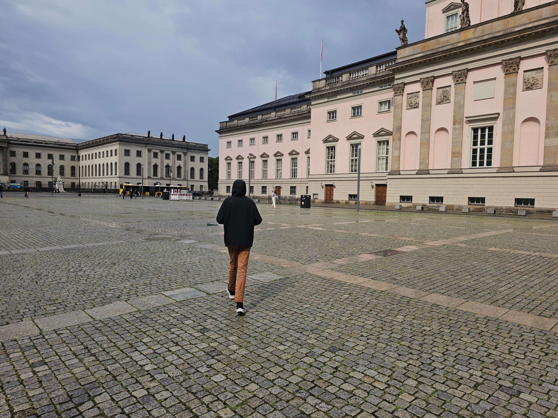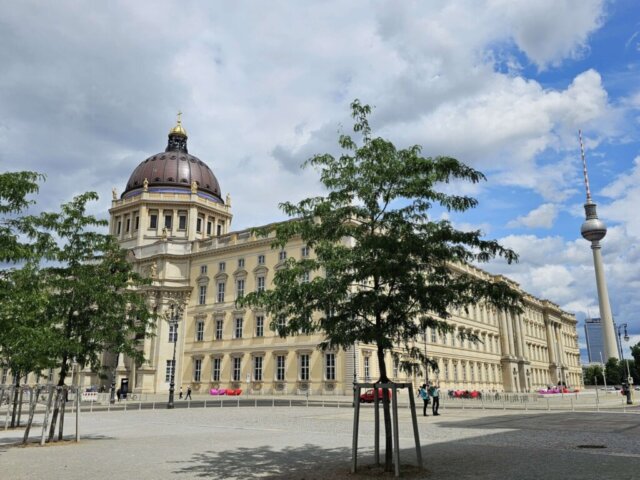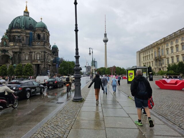 Mellem regnbyger gik vi tilbage mod Alexanderplatz. Da det er Jans første besøg i Berlin, måtte vi lige forbi et par seværdigheder som det tomme underjordiske bibliotek på Bebelsplatz, igennem Berliner Schloss og ind og se de flotte haller på det røde rådhus.