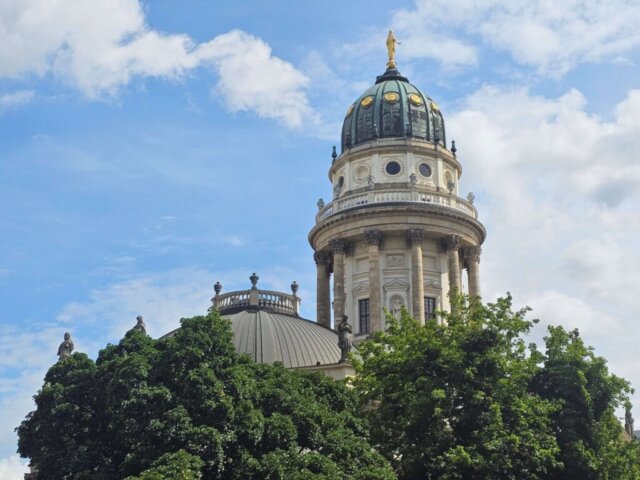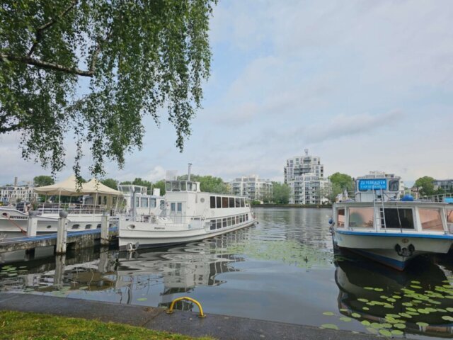 Fra Zoo var det tid til frokost, hvilket blev på Five Guys i nærheden. Det gav energi til lidt shopping, inden vi tog U-bahnen hjem igen. Der var ingen tvivl om aftensmad: madboderne på Alexanderplatz! Vi startede med en käsekrainer efterfulgt af et langosbrød – og så lige en crêpe med både kanelsukker og Nutella til dessert. Mellem retterne fik vi shoppet lidt mere. Mens vi spiste, sad vi og hørte rock’n’rollmusik fra scenen. Morgenens bekymringer om gentagne regnbyger hele dagen var helt unødvendige. Eneste byge blev den, mens vi kiggede på fugle, og her til aften skinnede solen endda fra en skyfri himmel. Vi håber på samme vejr i morgen, men tvivler…