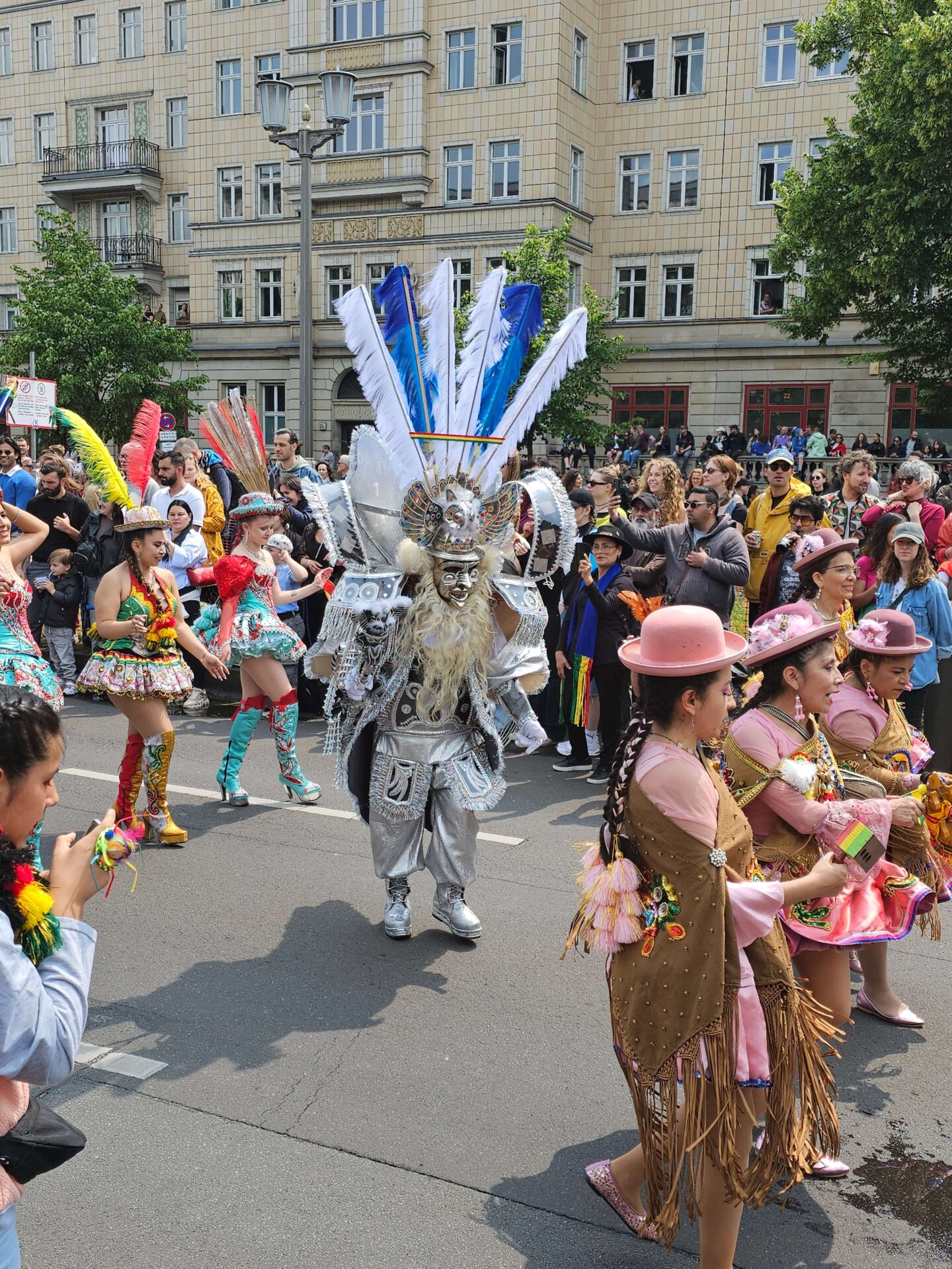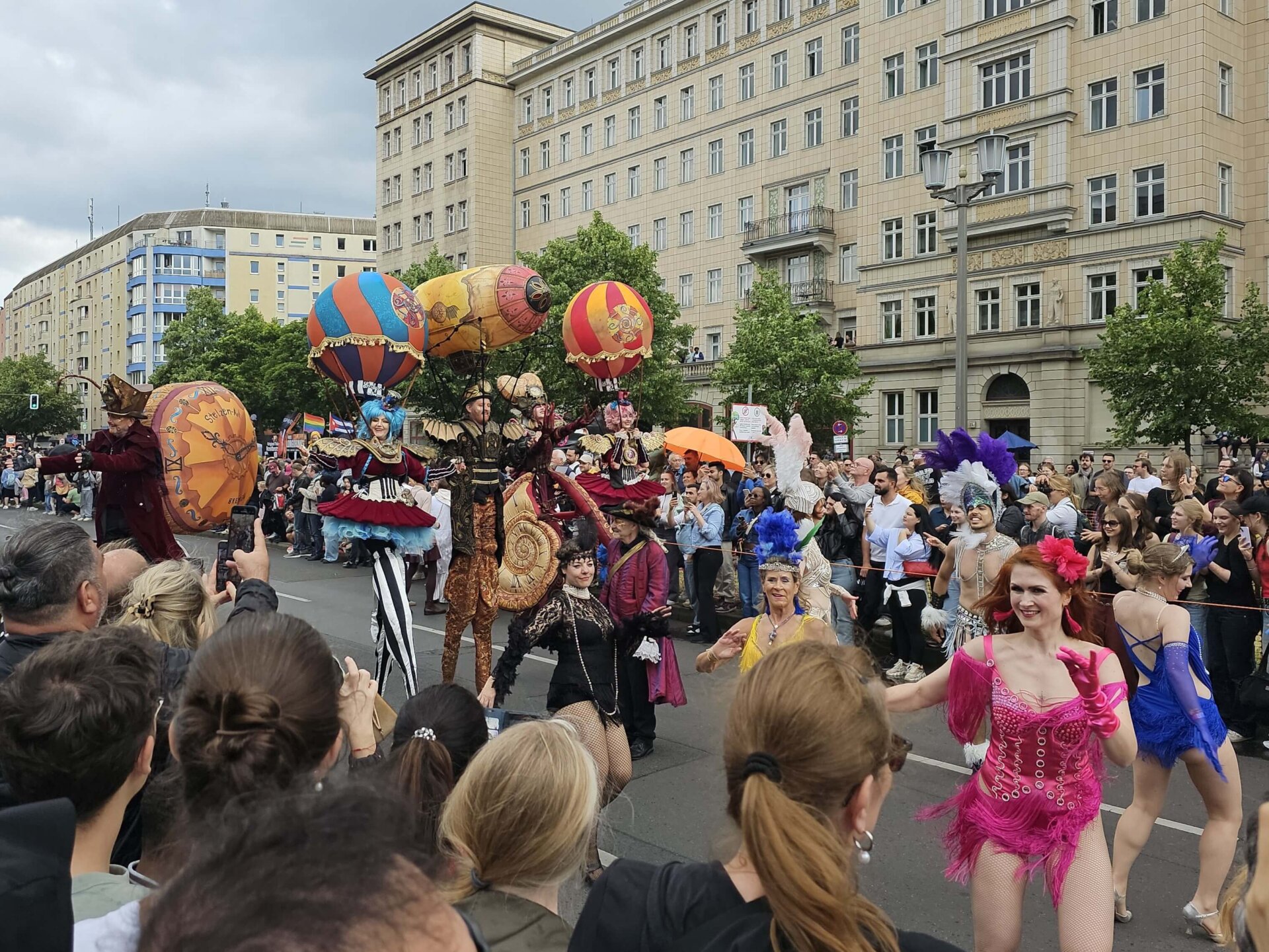 I Berlin holder de også pinsekarneval, og allerede da vi steg af toget ved en station tæt på den store parades start, vrimlede det med mennesker og politi. Og som vi nærmede os, kom der bare endnu flere!