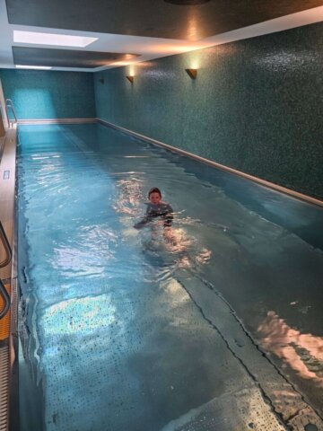 Efter en slapper i lejligheden var vi alle en tur i poolen, hvor de havde skruet noget ned for vandtemperaturen. Koldt!